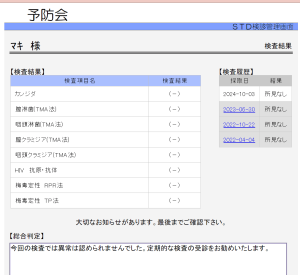 STD検査を受け、すべての項目で陰性でしたので、ご報告いたします。