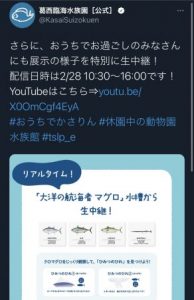 葛西臨海水族館が 水槽を生配信してくれています!🐟!
