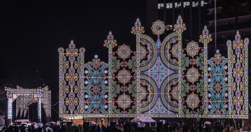 長さ70mにわたる光の回廊「ガレリア」や「フロントーネ」が設置されます。