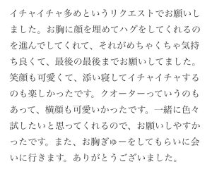 笑顔のことや、お胸のこと、たくさんたくさん褒めて頂けて嬉しかったです♡ノアも嬉しくって積極的になれました!
