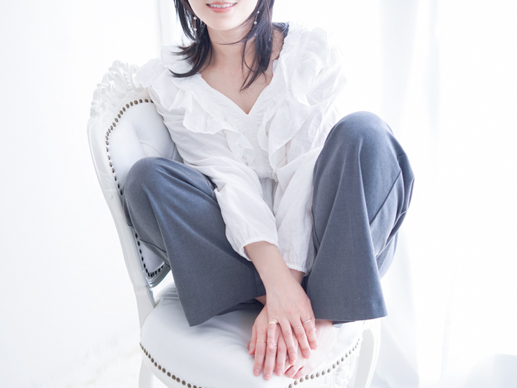 真っ白のトップスが爽やかさを引き立てていて、全体の柔らかい光とマッチしております♡