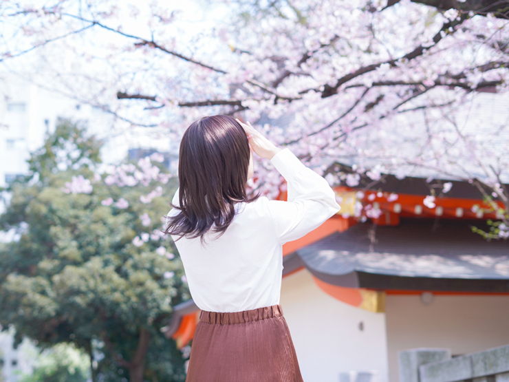 お顔に手をかざし桜を見上げるまこさんの後ろ姿が美しいです…!