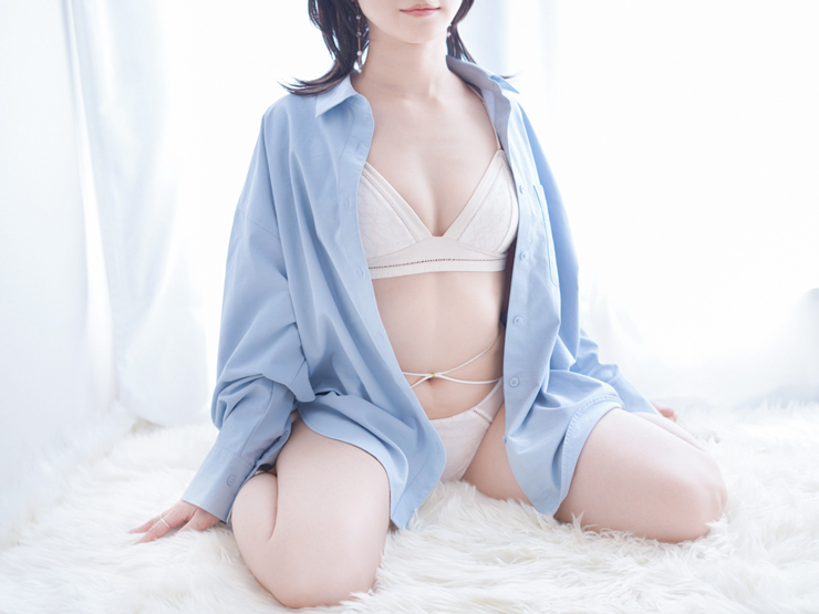 こちらはランジェリー&ブルーのシャツ姿のまこさん✨