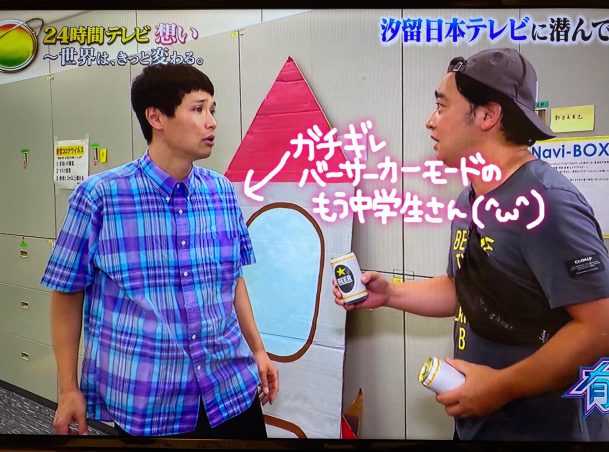 色んな芸人さんがテレビ局で働いている体の変わった(風味の)人に扮して、有吉さんと栞里ちゃんがそれをジャッジして回るという企画だったのですが、その中で『もう中学生』さんが……ブチ切れていらして……!
